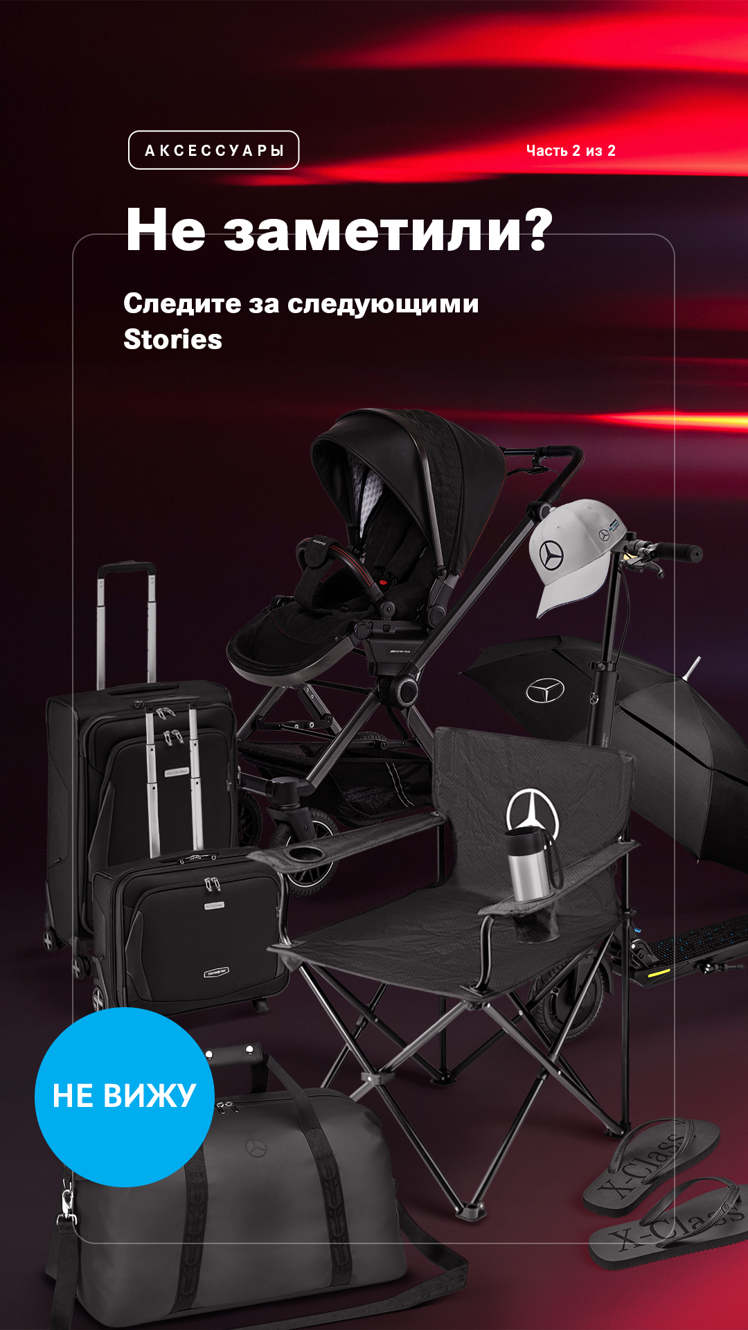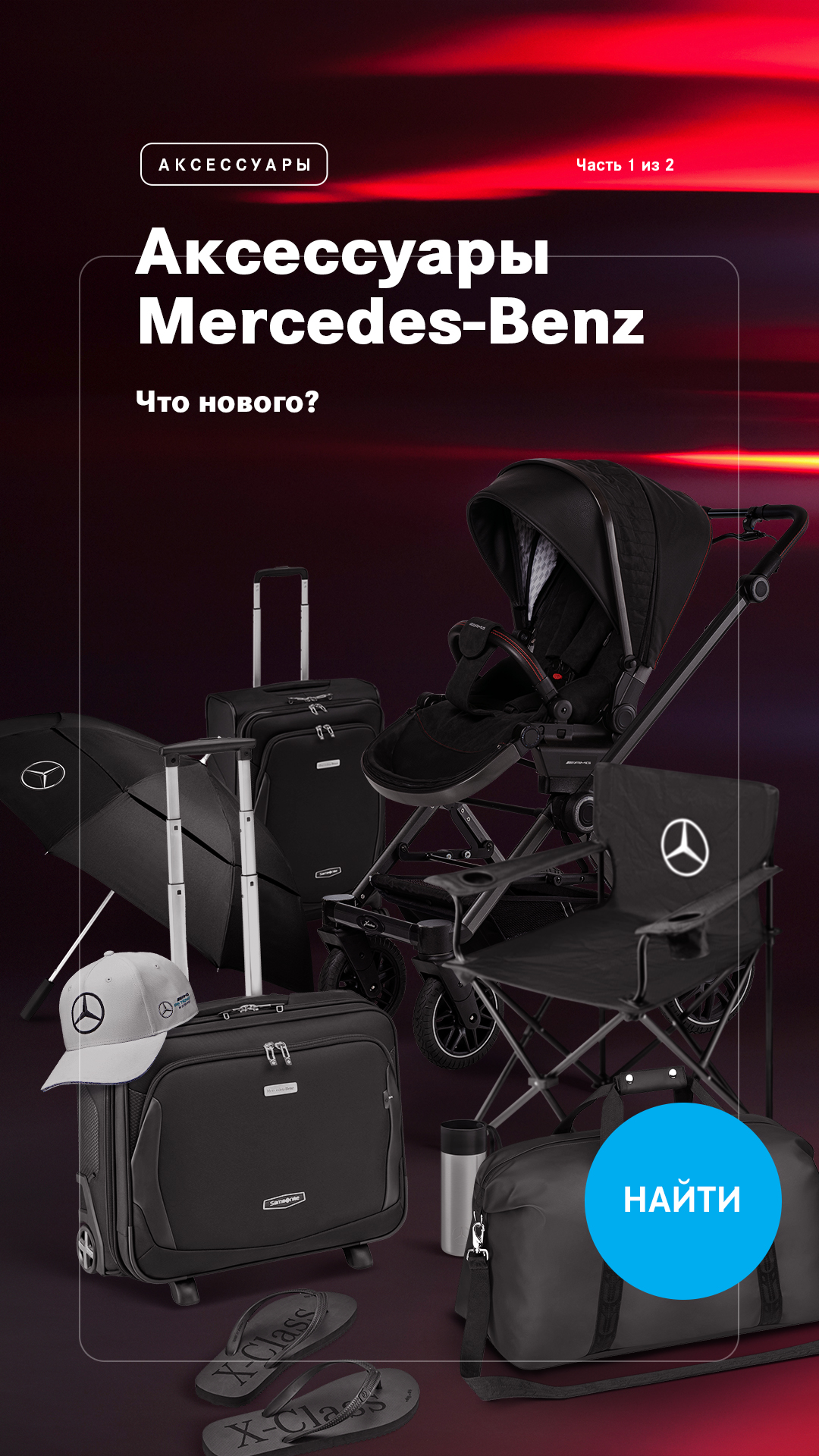 баннерка и сториз для продвижения оригинальных аксессуаров от Mercedes-Benz.